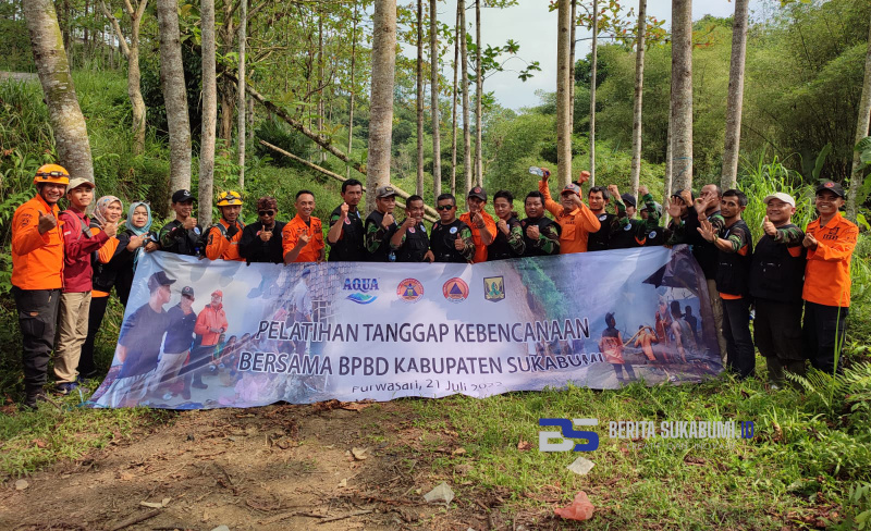 BERITASUKABUMI.ID – Badan Penanggulangan Bencana Daerah (BPBD) Kabupaten Sukabumi bersama PT Aqua Golden Mississippi (AGM) Mekarsari mengadakan pelatihan tanggap Kebencanaan, di Desa Purwasari, Kecamatan Cicurug, Kabupaten Sukabumi, Kamis (21/07/22).