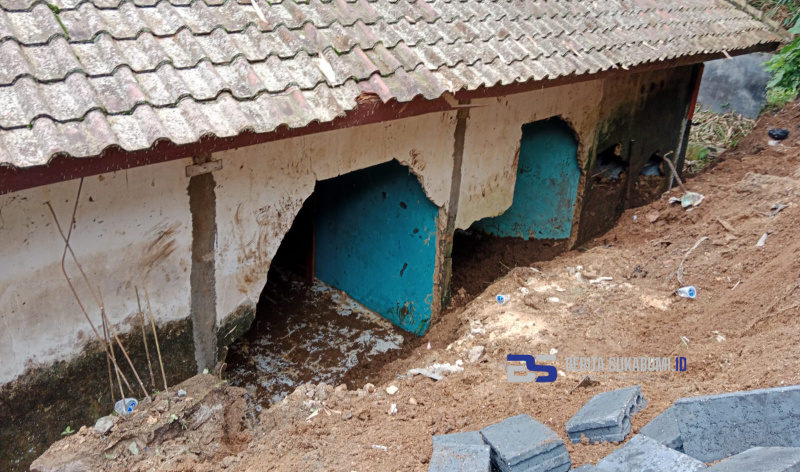 “Material longsoran tebing tersebut mengenai 2 dinding kamar dan dinding dapur yang berada di samping rumah Panji, sehingga material longsoran masuk kedalam kamar,” ujarnya kepada beritasukabumi.id.