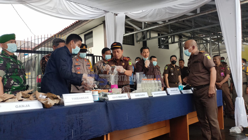BERITASUKABUMI.ID – Kejaksaan Negeri (Kejari) Kabupaten Sukabumi memusnahkan barang bukti sebanyak 248 Kasus berupa Narkoba jenis sabu, ganja, obat-obatan terlarang serta barang bukti kejahatan lainnya, Kamis (24/11/22).