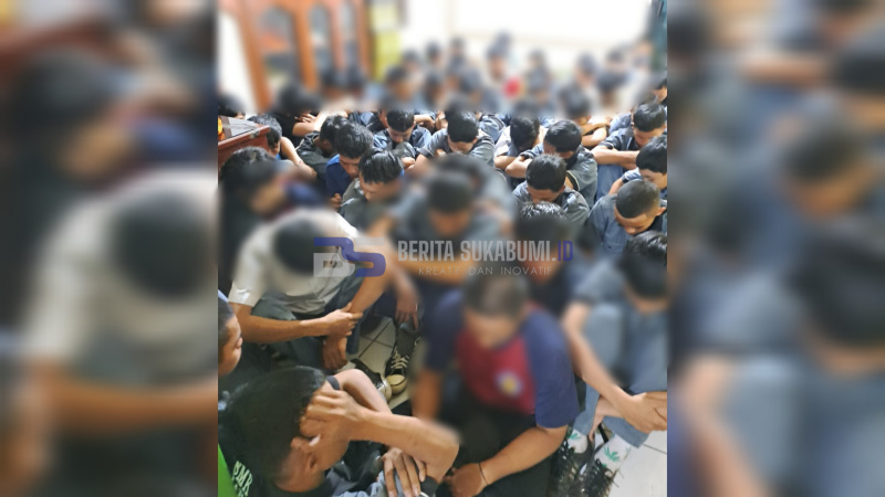BERITASUKABUMI.ID – Sedikitnya 59 Pelajar SMK yang berada di Cisaat Kabupaten Sukabumi diamankan Polsek Cicurug, Polres Sukabumi. Pasalnya puluhan pelajar yang masih memakai seragam sekolah itu diduga akan melakukan aksi tawuran di wilayah Kecamatan Cicurug.