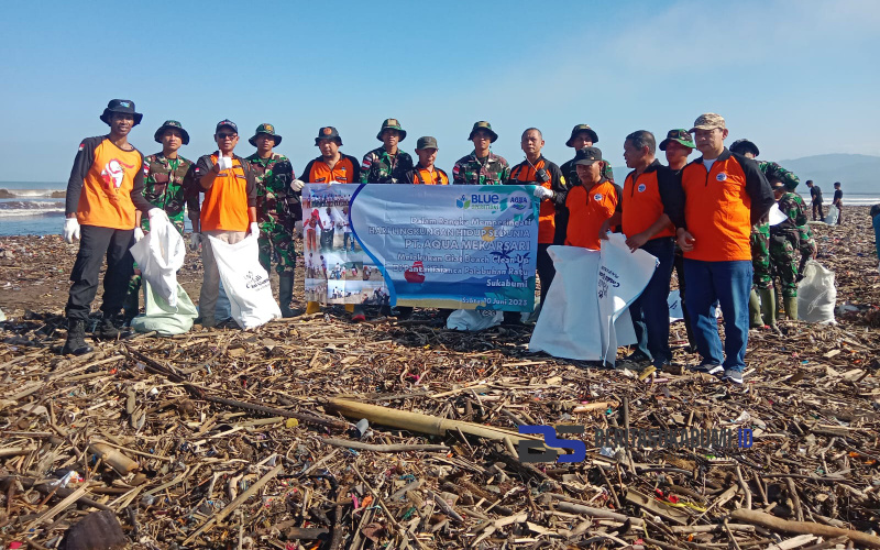 Peduli Lingkungan, PT Aqua Mekarsari Ikut Bersihkan Tumpukan Sampah di Pantai Talanca Simpenan