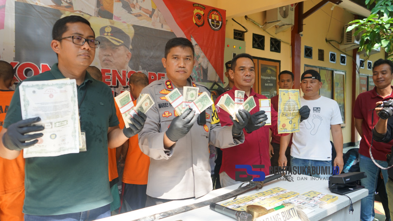 BERITASUKABUMI.ID – Satreskrim Polres Sukabumi melaksanakan pers rilis terkait dengan pengungkapan perkara memperjual-belikan uang palsu dengan mata uang jenis dolar yang bertempat di Mapolres Sukabumi, Minggu (09/07/23).