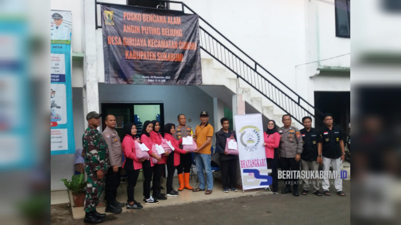 BERITASUKABUMI.ID – Bhayangkari Polsek Cidahu, Polres Sukabumi menyambangi warga yang terdampak angin puting beliung di Desa Cidahu dan Girijaya, Kecamatan Cidahu, Kabupaten Sukabumi, Jumat (10/11/23).