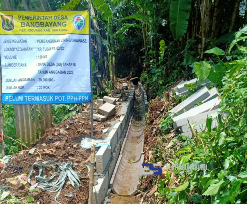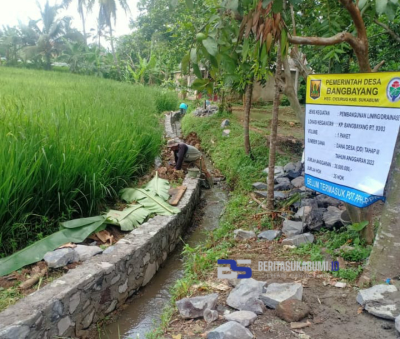 BERITASUKABUMI.ID – Pemerintah Desa Bangbayang, Kecamatan Cicurug, Kabupaten Sukabumi telah merealisasikan Anggaran Dana Desa (DD) melalui pembangunan saluran irigasi atau lining dan rabat Jalan Lingkungan (Jaling) di tiga lokasi.