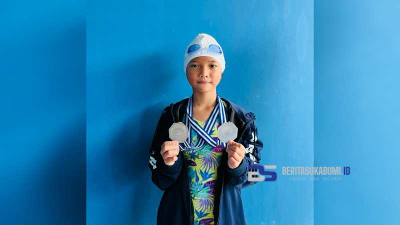 BERITASUKABUMI.ID – Annisa Syakira (Kekey) 11 tahun, siswi kelas VI SDN Sukataris, Kecamatan Karang Tengah, Kabupaten Cianjur berhasil membawa dua medali perak dalam perlombaan Auctor Akuatik Cup 2024 di SMA Negeri 2 Cianjur pada Sabtu, 3 Februari 2024 kemarin.
