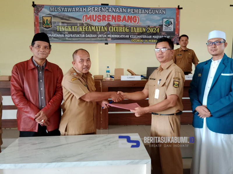 BERITASUKABUMI.ID – Forkopimcam Cicurug menggelar kegiatan musyawarah rencana pembangunan (musrenbang) Kecamatan Cicurug tahun 2024 bertempat di Aula Kantor Kecamatan Cicurug, Kabupaten Sukabumi, Senin (05/02/24) kemarin.