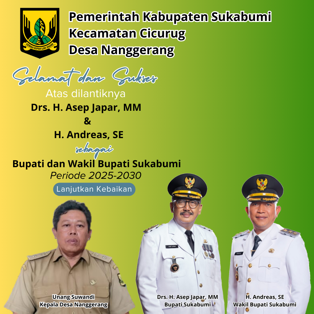 Dengan adanya pelantikan tersebut, Kepala Desa Nanggerang, Kecamatan Cicurug, Kabupaten Sukabumi, Unang Suwandi mengucapkan selamat dan sukses atas dilantiknya Bupati dan Wakil Bupati Sukabumi, Drs. H. Asep Japar, MM dan H. Andreas, SE periode 2025-2030.