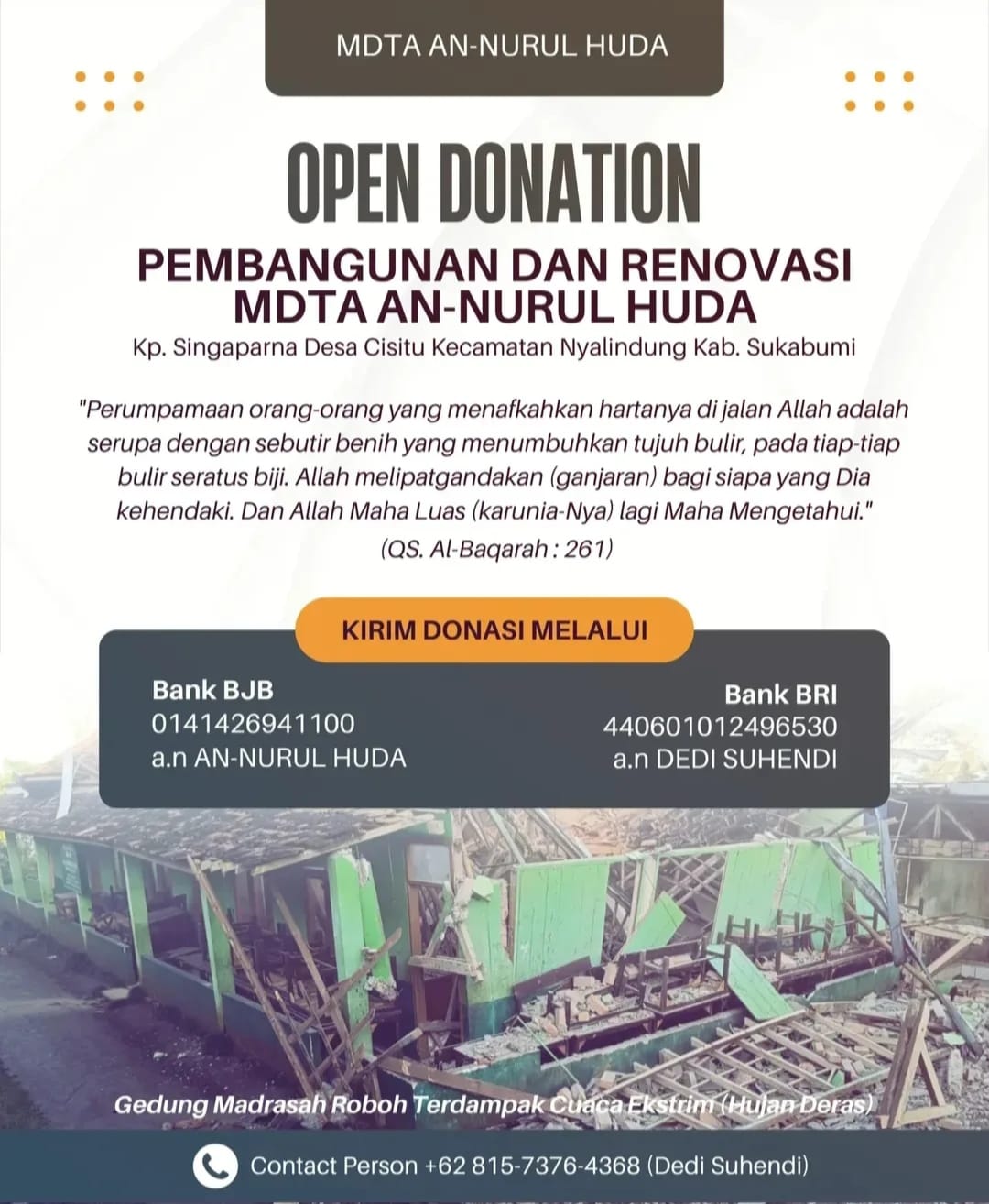 Berdasarkan informasi yang berhasil dihimpun beritasukabumi.id, peristiwa ambruknya sekolah MDTA tersebut pada bulan Maret 2025 akibat curah hujan yang sangat tinggi.