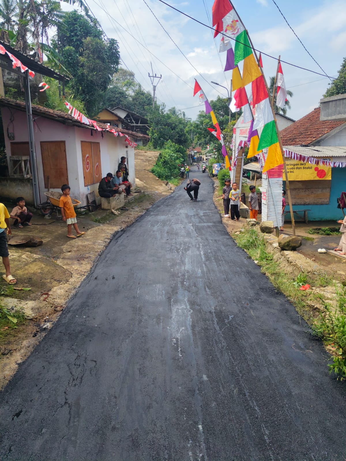 Kepala Desa Wangunjaya, Ipin Aripin mengatakan, perbaikan jalan berstatus desa itu memiliki panjang 250 meter dan lebar 2,5 meter.