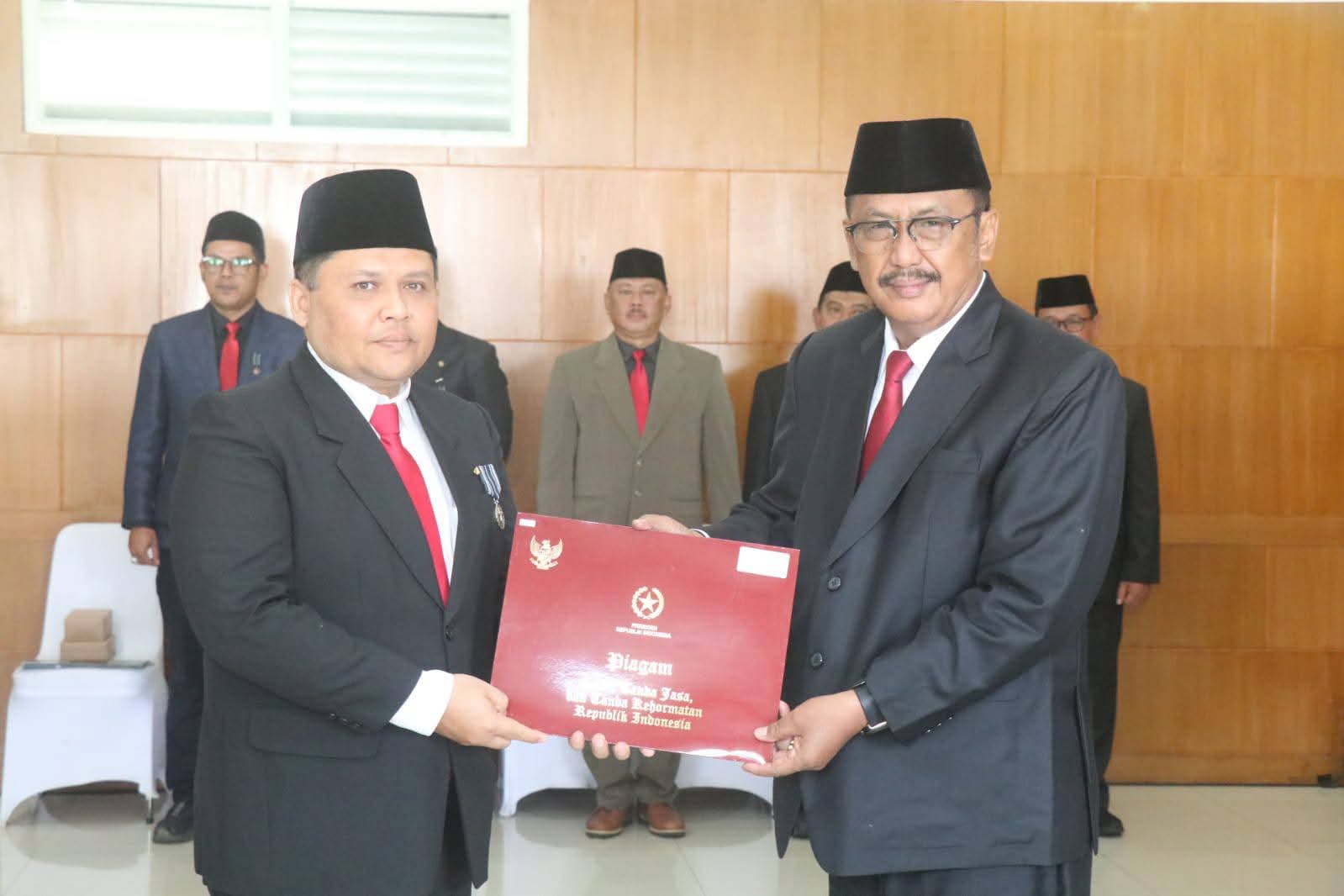 BERITASUKABUMI.ID – Sejumlah Pegawai Negeri Sipil (PNS) di Kabupaten Sukabumi mendapatkan anugerah Satyalancana Karya Satya yang diserahkan langsung oleh Bupati Sukabumi H. Asep Japar di Pendopo Sukabumi, hari Jumat, 5 Desember 2025. Tanda kehormatan dari Presiden Republik Indonesia ini diberikan untuk mengakui pengabdian mereka selama 10, 20, dan 30 tahun.